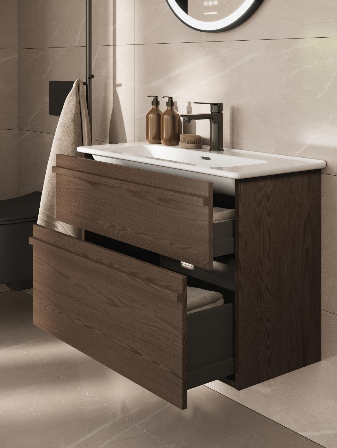 Laaja valikoima kylpyhuonekalusteita