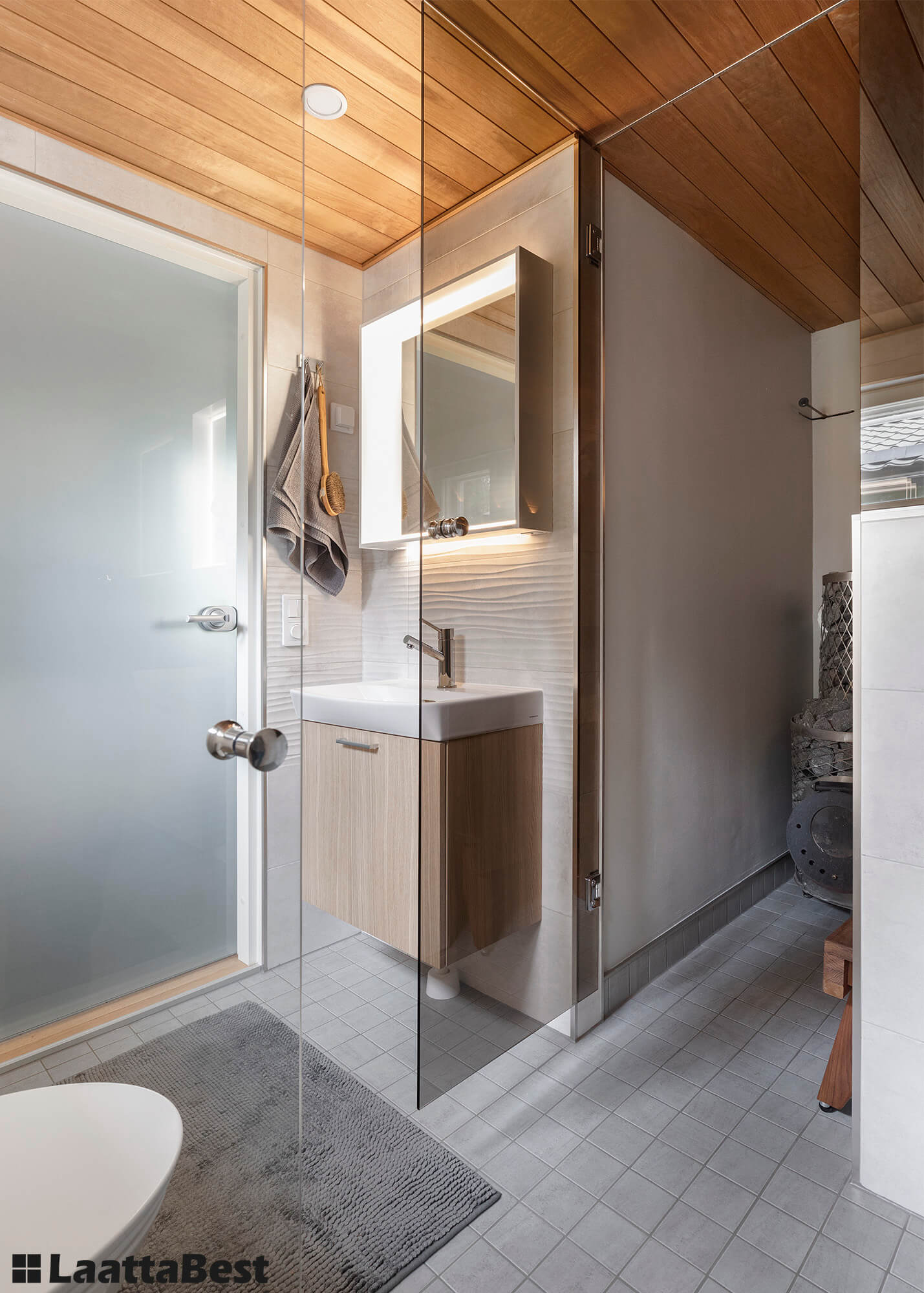Toiveenamme oli saada kylpyhuone, joka on toteutettu laadukkailla ja ajattomilla materiaaleilla; tila, johon arkiaamuna sujahtaessa tulee hykerryttävä olo.
