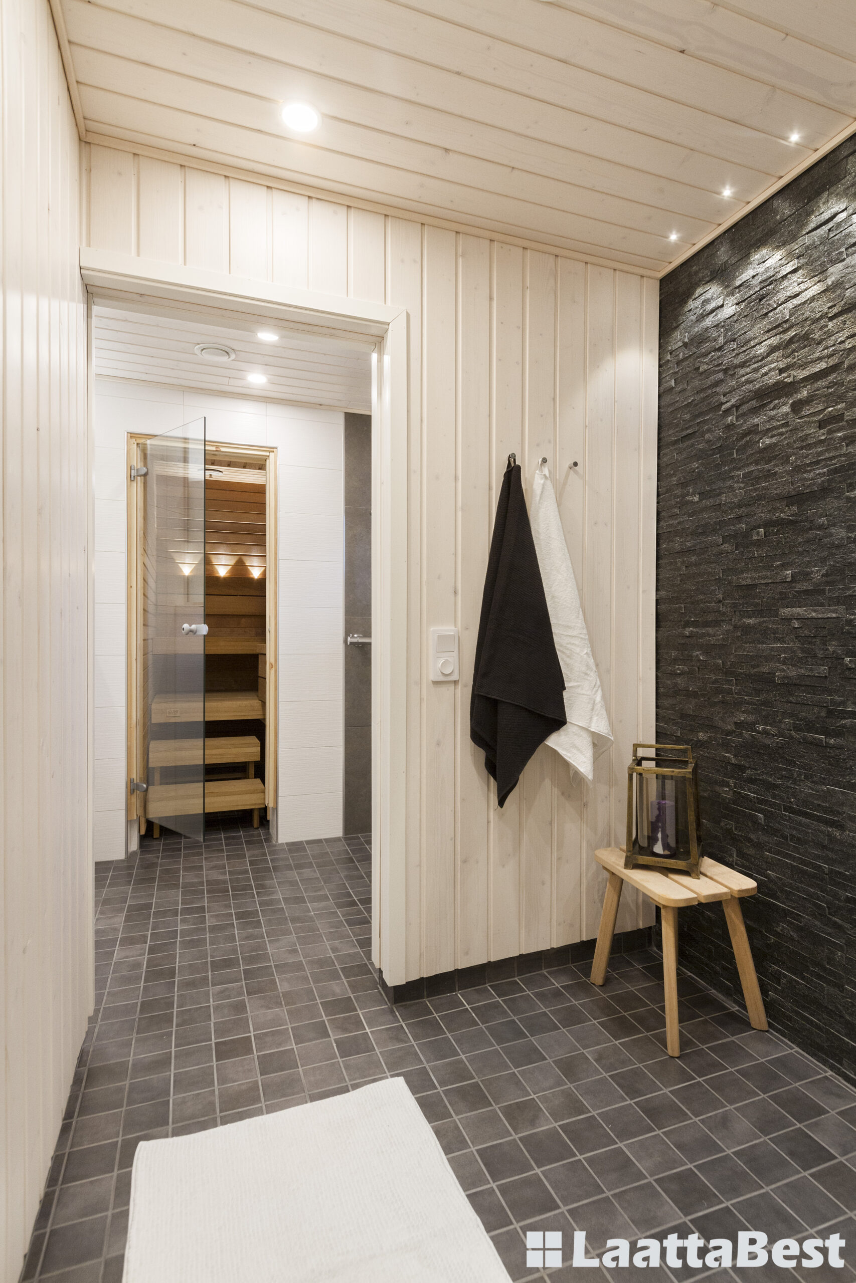 Seinälaatat: CRT Garda White ja Pukkila Altaj Grigio Scuro