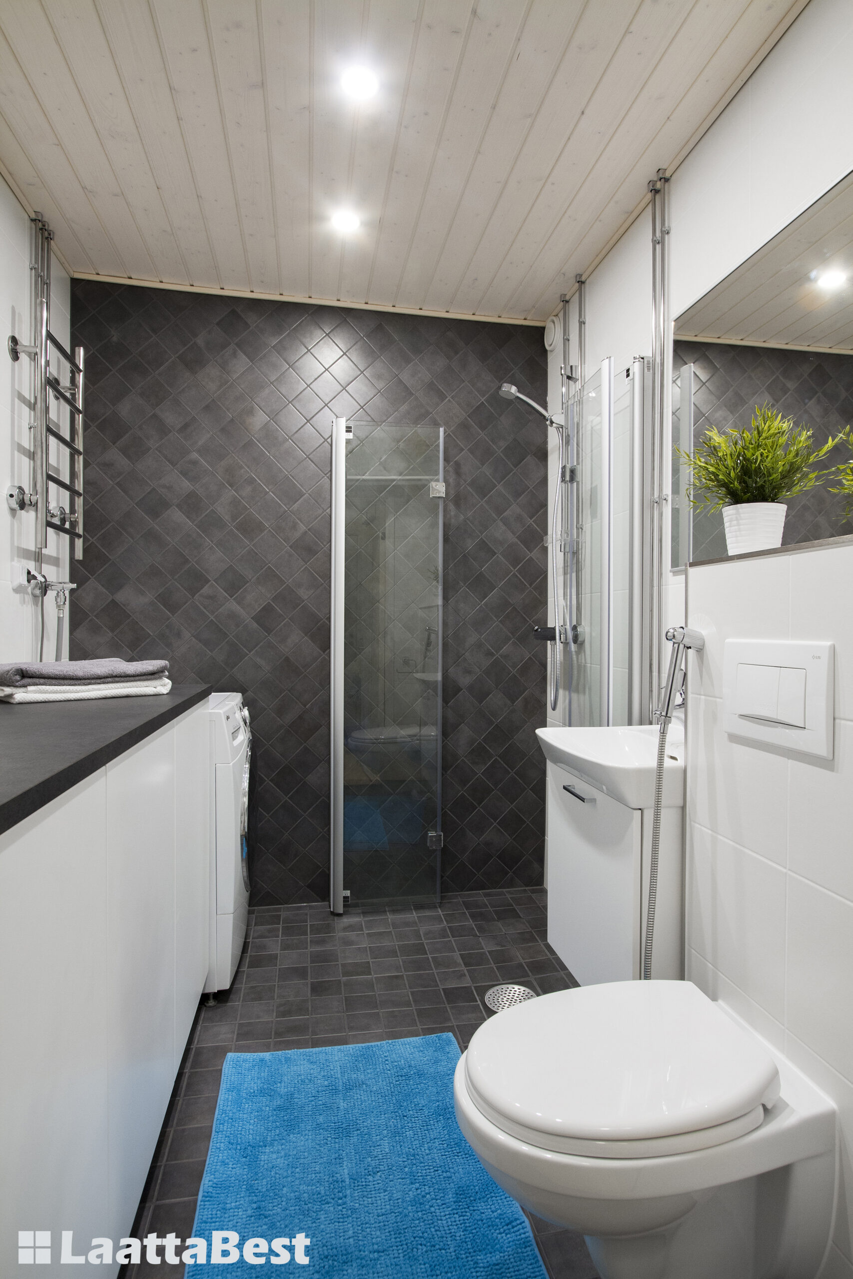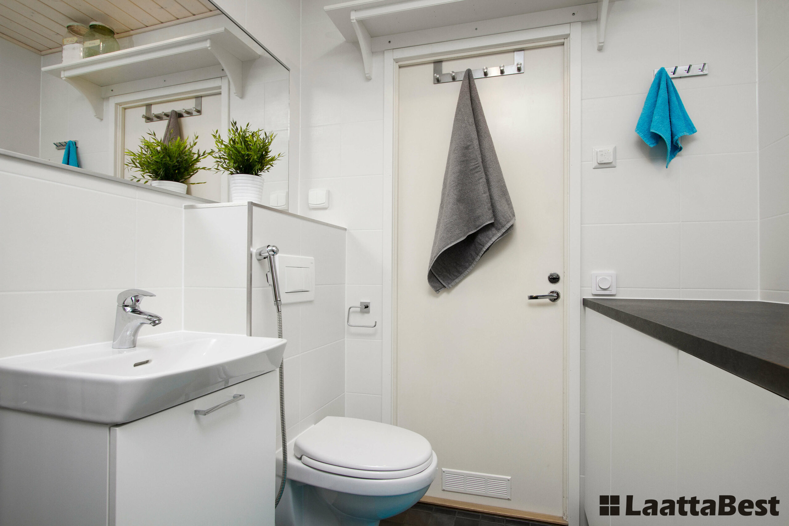 Kerrostalohuoneiston kylpyhuone uudistettiin nykyaikaiseksi.