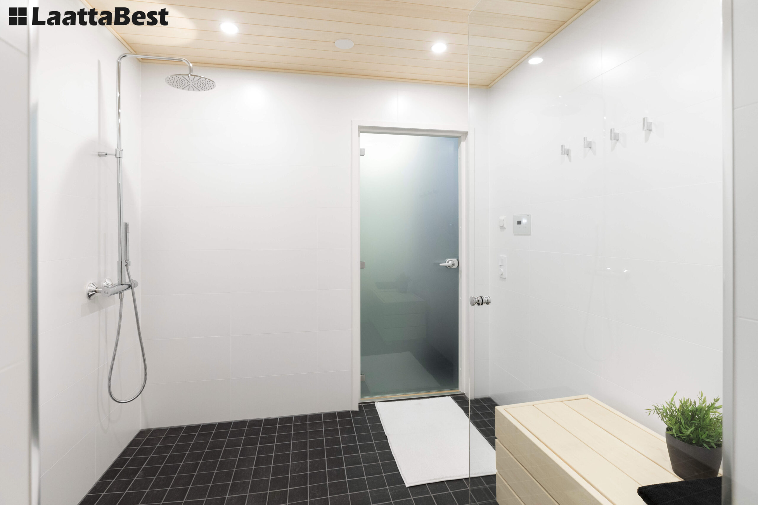 Tyylikäs uudistus sauna- ja pesutiloihin, Vantaalla omakotitalossa.
