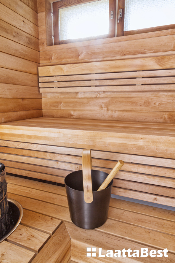 Sauna tervaleppää. Lumisaunat Retro. Saunan paneeli tervaleppä STS.