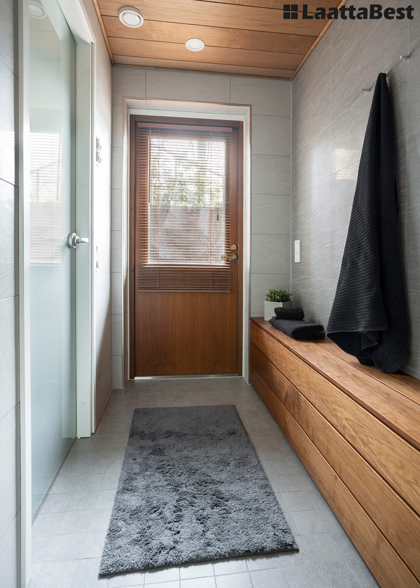 Upea muutos. Katso kuvia myös ennen remonttia! Saunan seinät lämpöhaapa. Yksi seinä tehty lämpöhaapa Premium -tehostepalikoilla