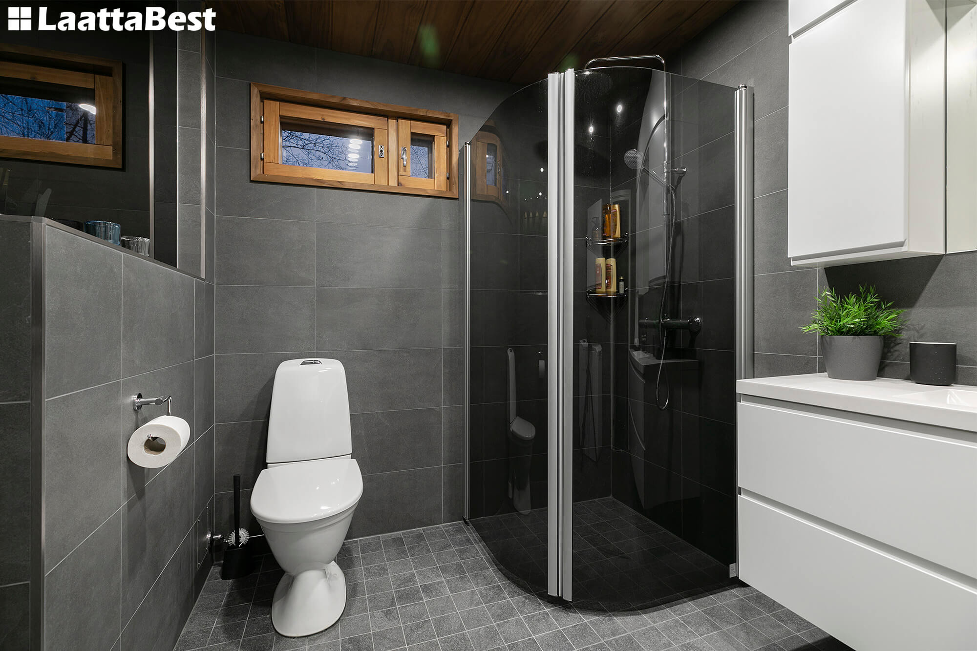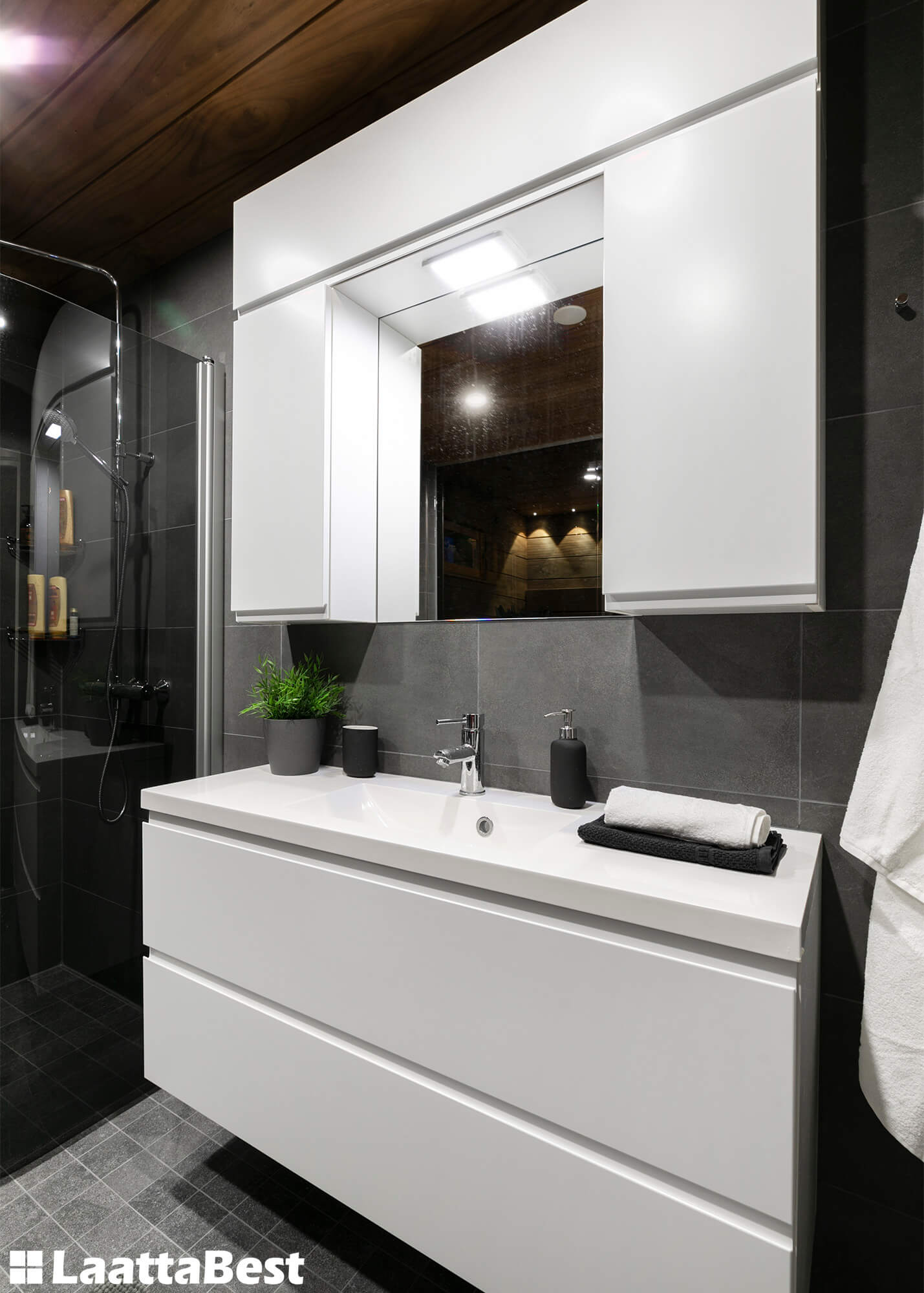 Laatat: Seinä Pro Stone Antracite, lattia Kaamos Black
